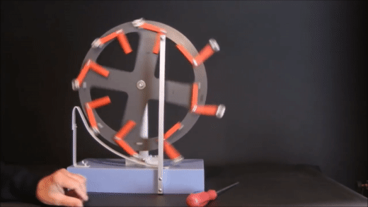 Q: How does the wheel keep turning? How do the bars pull more on their way down than on their way up?