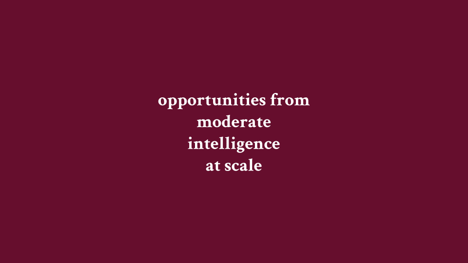 Opportunities from Moderate Intelligence at Scale