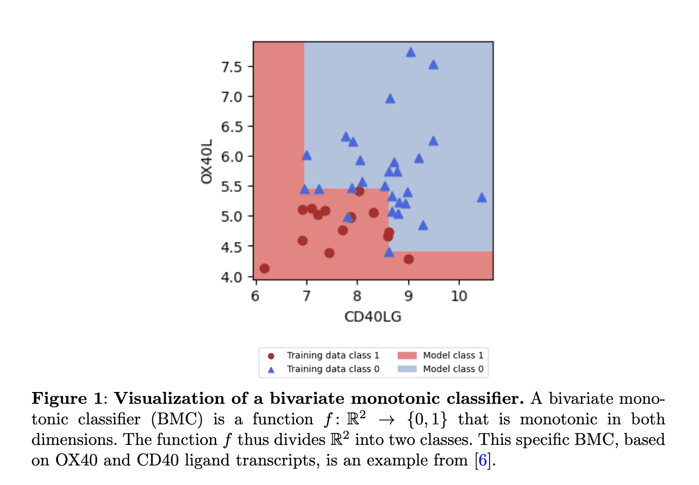 We considered exploring algorithms that greedily fit monotonic decision boundaries (see e.g., Figure 1 from this paper)