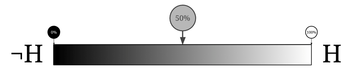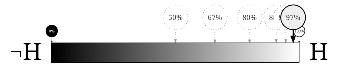 (As for what happens when we approach the end of the line, there isn't one! 0% probability becomes bits of credence and 100% probability becomes bits of credence