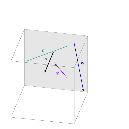 Now if we have two vectors and in our basis, we can reach any vector within the plane containing both and :